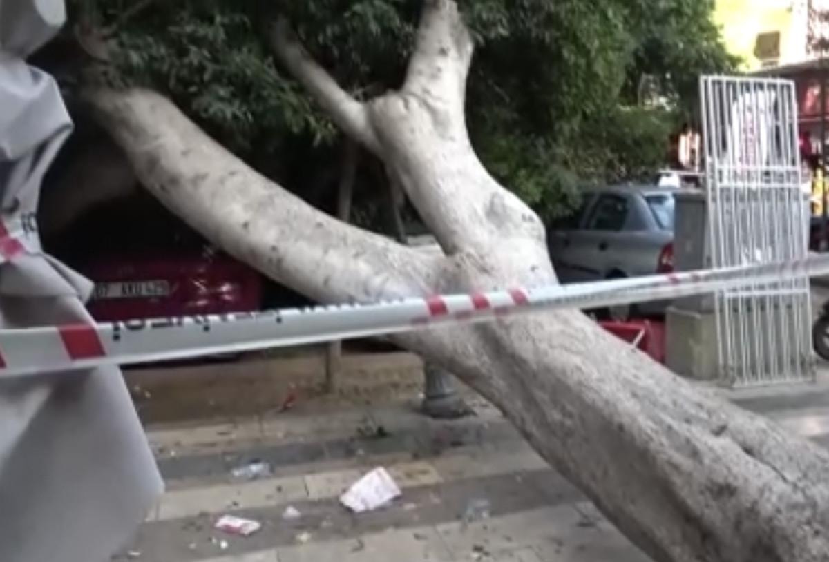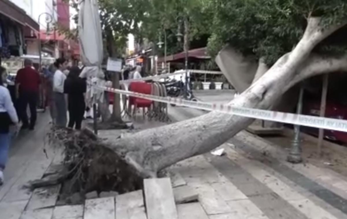 Görüntülerde, yayaların yoğun olarak kullandığı yolda bulunan ağacın devrilmeden saniyeler öncesinde altında sandalyelerde oturan vatandaşlar bulunduğu ve bir kişinin ağaç dallarının altında kalmaktan son anda kurtulduğu görüldü.