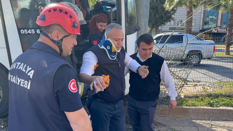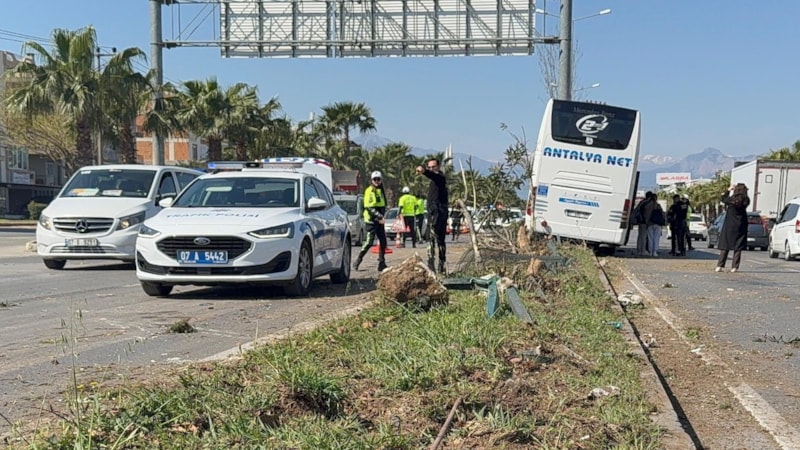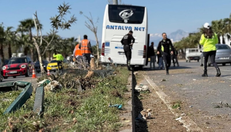 Kepez ilçesinde bir yolcu otobüsü, direksiyonu kilitlenince refüje çıkarak Elektronik Denetleme Sistemi (EDS) direğine çarptı. Kazada, araçta sıkışan şoför yaralandı.