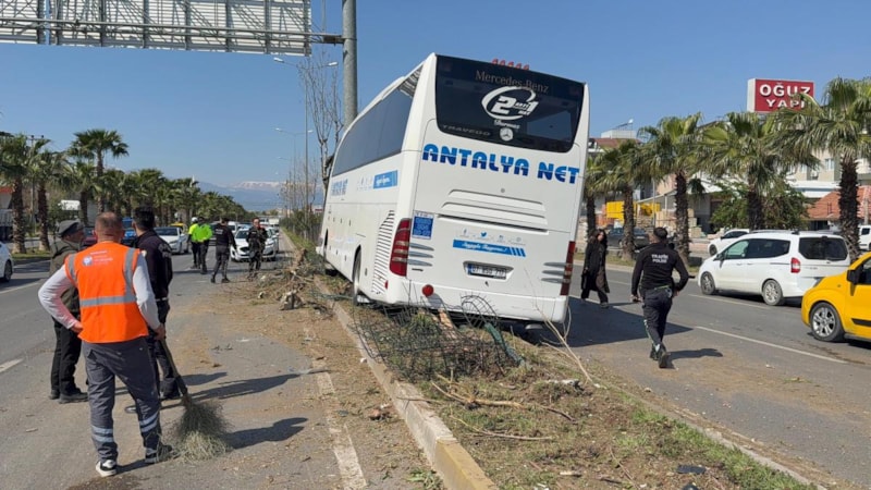 Antalya'nın Kepez ilçesinde, Alanya'dan aldığı yolcularla İstanbul'a gitmek üzere olan Aydın Doğan idaresindeki şehirlerarası yolcu otobüsü, direksiyonu kilitlenince refüje çıktı.