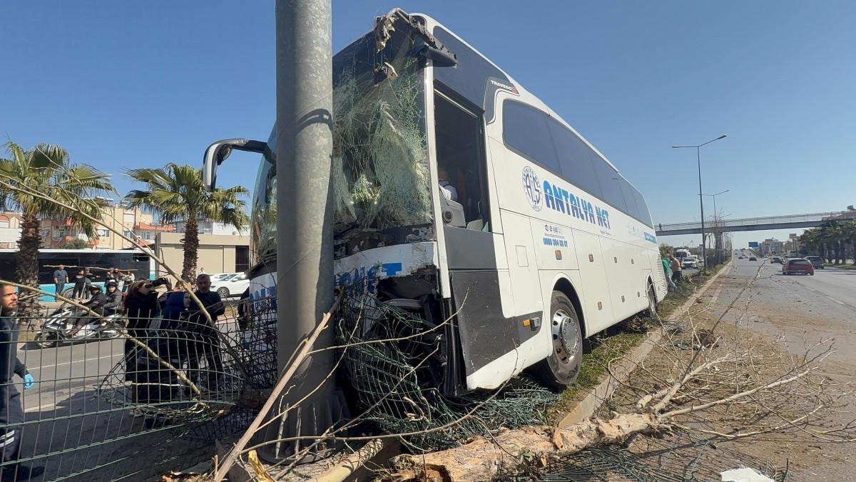 Antalya'nın Kepez ilçesinde, bir yolcu otobüsünün kontrolden çıkarak refüjdeki ağaçlara çarpması sonucu 6 kişi yaralandı.