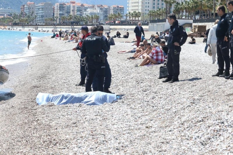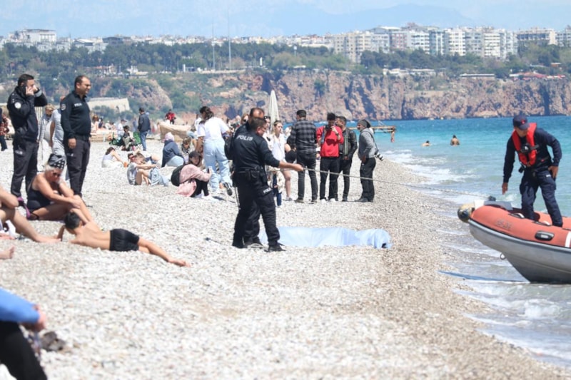 Konyaaltı Sahili'nde denize kıyafetleriyle giren 55-60 yaşlarında kimliği belirsiz erkek, hayatını kaybetti.