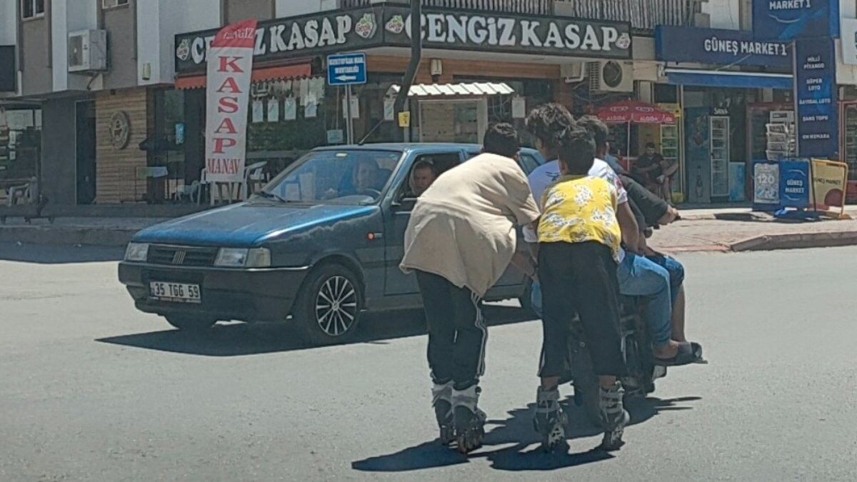 İHA'nın haberine göre; trafikte yürekleri ağza getiren çocuklar, geçtiğimiz günlerde otobüsün altında kalarak hayatını kaybeden patenli genci akıllara getirdi.