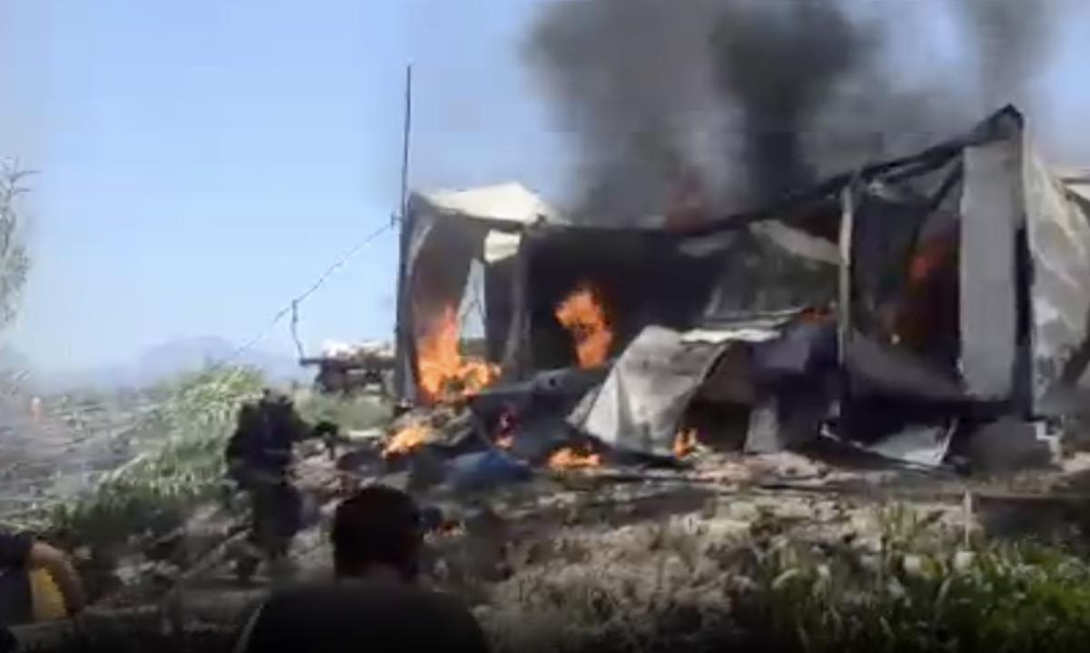 Kök'ün çilek ektiği tarlasında yaşadığı bahçe evi, yangında kullanılamaz hale geldi.
