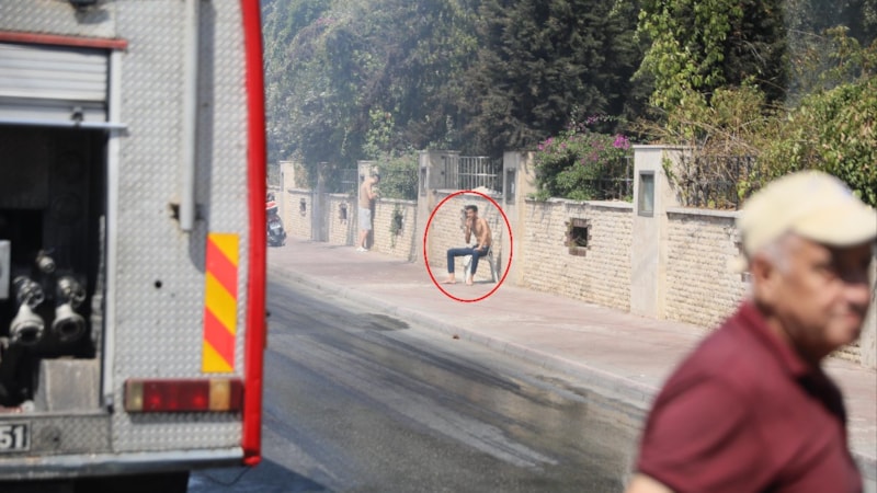 Daha sonra yarı çıplak halde evden çıkıp yolun karşısına geçen Mesut Can Y., oturduğu tabureden yangını izledi.