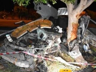 Refüjdeki ağaçlara çarparak durabilen otomobil, ikiye bölündü.