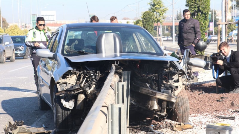 26 yaşındaki sürücü, bulvarda kontrolden çıkarak tramvay yolundaki bariyere çarptı.