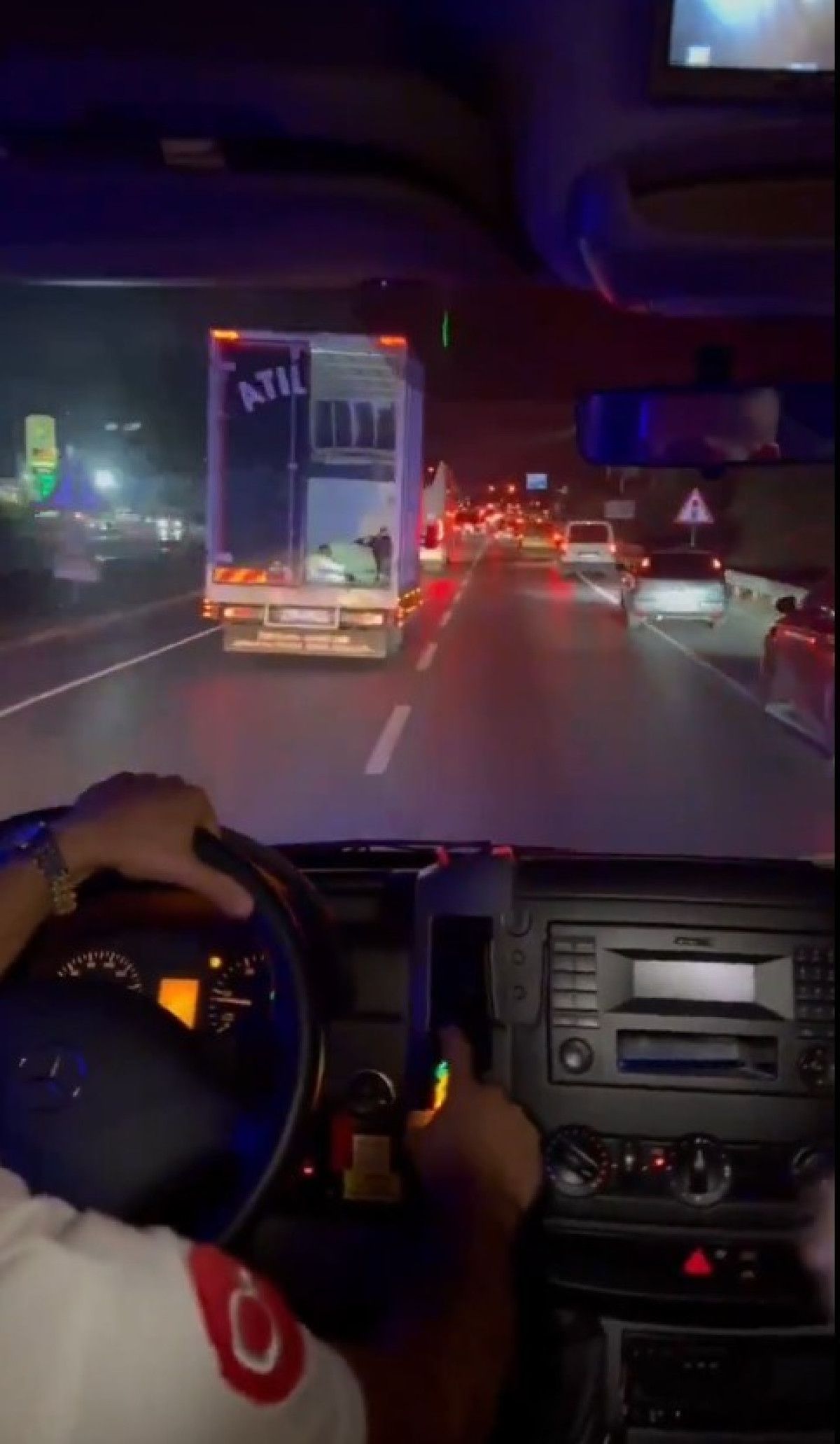 Yine görüntülerde bir kamyonetin kasasında uzanan bir vatandaşın da el sallayarak ambulansa geç işaretinde bulunduğu da yansıdı.