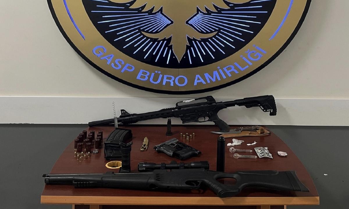 Yakalanan şahıslardan; 4 adet ateşli silah, 2 adet şarjör, 27 adet fişek/kartuş, 2 bıçak ve bir miktar uyuşturucu madde ele geçirildi.