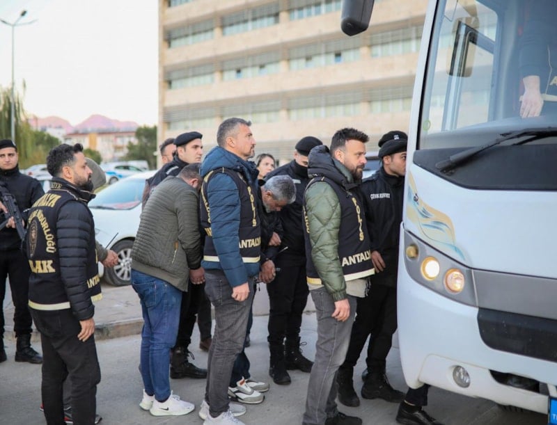 Antalya'ya getirilen 15 şüpheli, emniyetteki işlemlerinin ardından adliyeye sevk edildi. Şüphelilerden 13'ü tutuklanıp, cezaevine gönderildi.