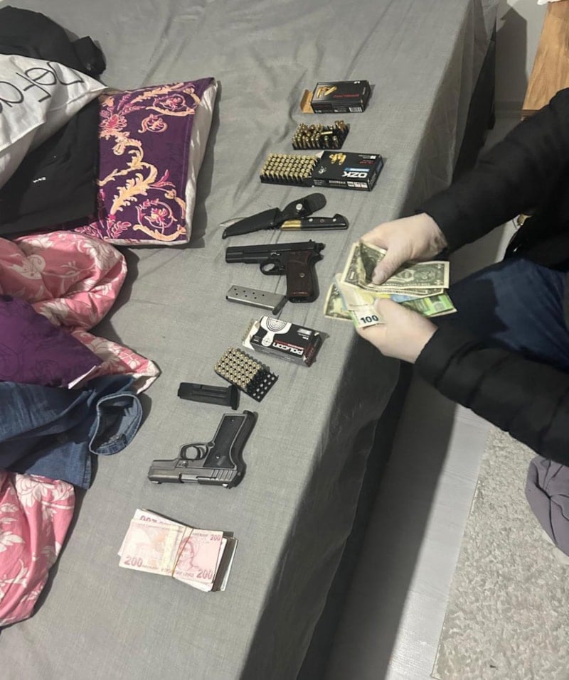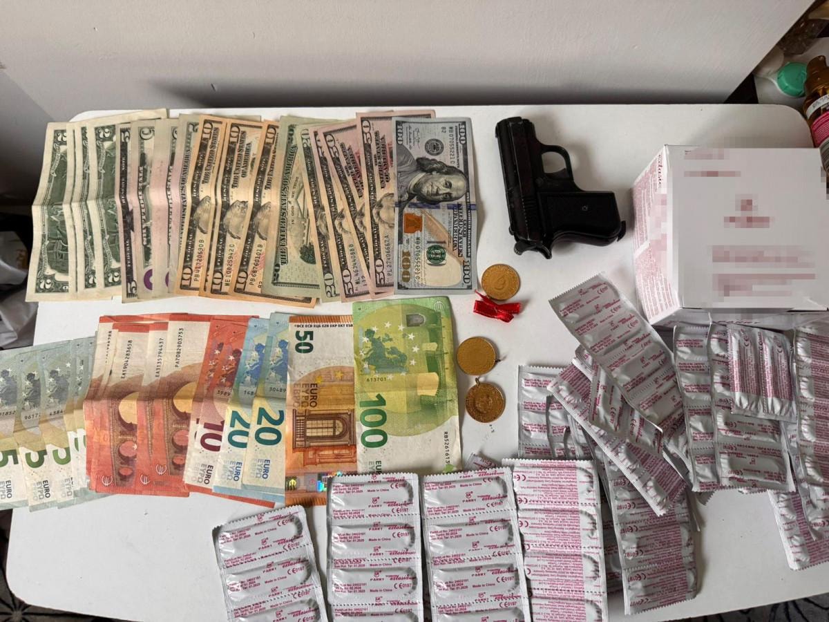 Ekiplerin aramalarında; 7 ruhsatsız tabanca ve tabancalara ait 172 mermi, 352 bin 725 Türk lirası, 384 dolar, 505 euro, çok sayıda dijital materyal ve fantezi kelepçesi gibi cinsel içerikli objelerle seans ücretlerinin yazılı olduğu çeteleler ele geçirildi.