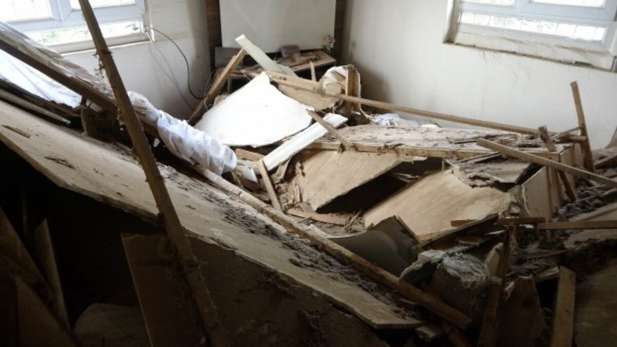 Tavanın çökmesiyle oda kullanılmaz hale geldi. Odanın içine tahta ve çeşitli odun parçaları düştü.