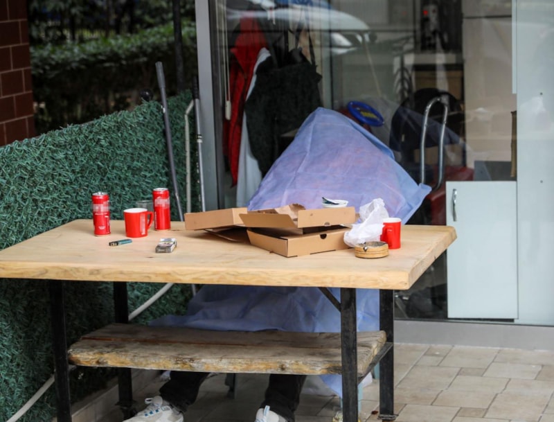 Adem Askan'ın önündeki masada, yiyecek ve içecek kutuları olduğu görüldü.