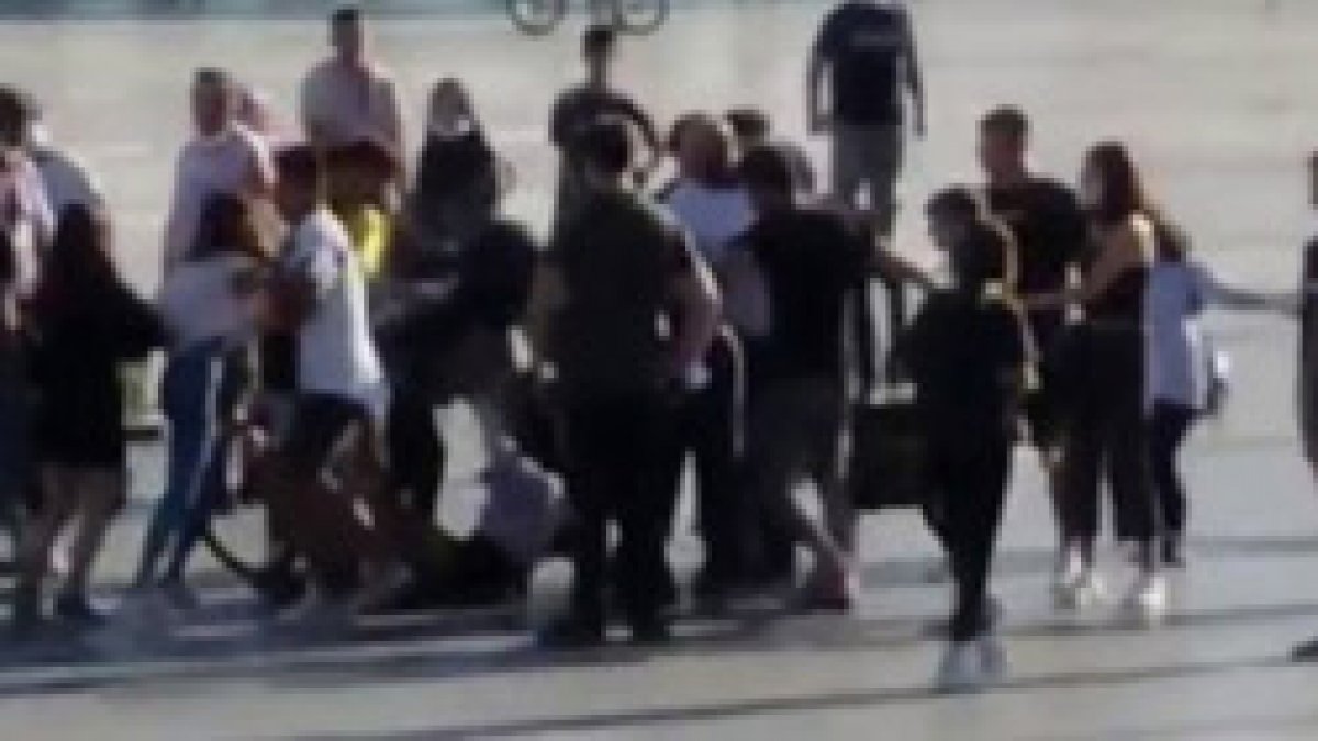 Antalya'nın simge noktalarından Cumhuriyet Meydanı Yükseliş Anıtı yanında bilinmeyen nedenle tartışmaya başlayan 3 genç kız, saç saça baş başa kavgaya tutuştu.
