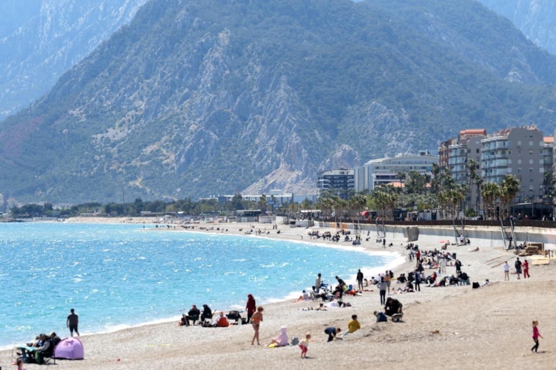 Antalya'da sıcak hava, sahillere hareketlilik getirdi.