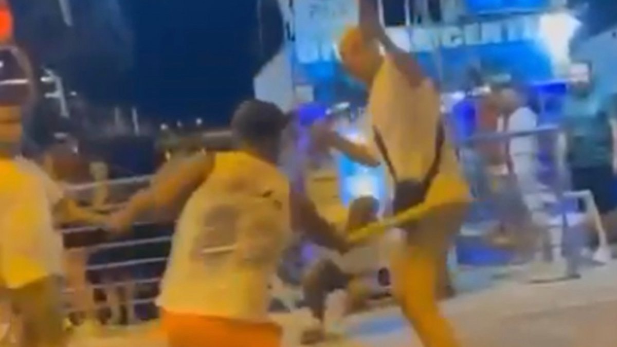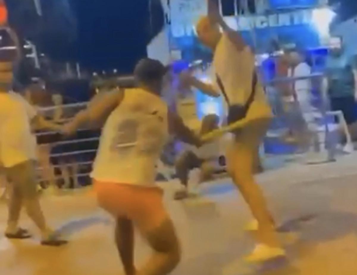Caddeden geçen turistlerin de izlediği kavga, saniye saniye cep telefonu kamerasıyla görüntülendi.
