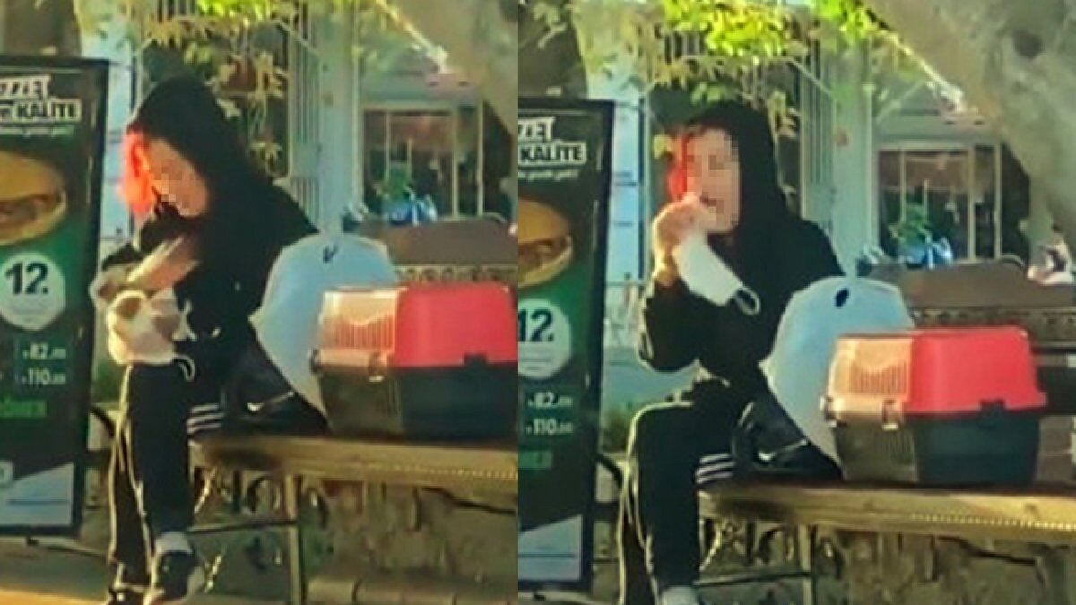 Antalya'nın Gazipaşa ilçesi İstiklal Mahallesi Mehmet Oğuz Bulvarı üzerindeki bankta oturan genç bir kadın, kucağına aldığı hamsterı tokatlamaya başladı.