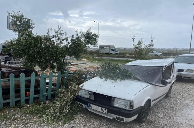 Manavgat ilçesinde gece saatlerinde başlayan ve sabah etkisini artıran sağanak, günlük yaşamı olumsuz etkiledi. Çıkan hortum da bir iş yeri önündeki minibüsü havalandırıp, otomobilin üzerine attı.