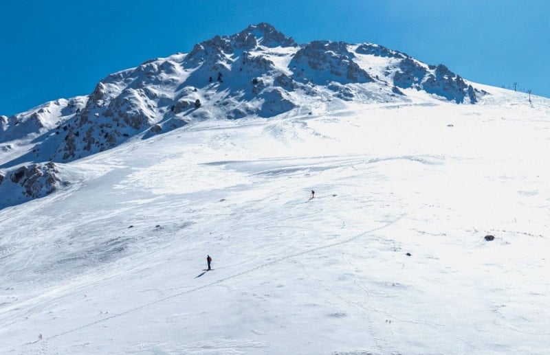 Antalya'da bazı vatandaşlar Saklıkent'in zirvesinde kayak yaparken, bazıları da 40 kilometre uzaklıktaki Konyaaltı Sahili'nde denize giriyor.