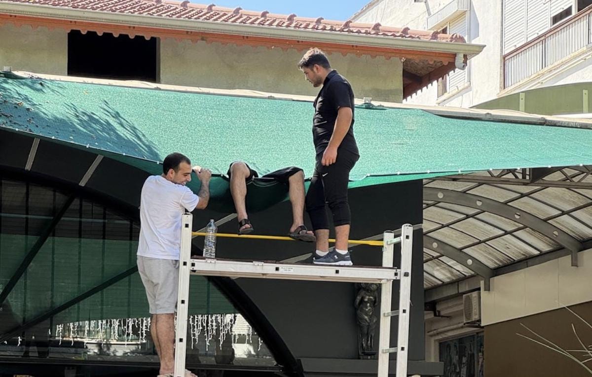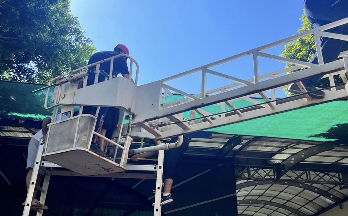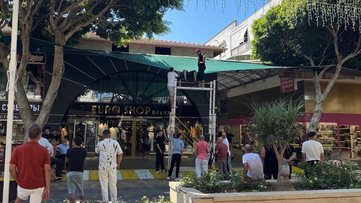 İtfaiye ekipleri olay yerine ulaşana kadar, esnaf merdiven yardımıyla tenteye çıkarak Gültepe'yi sakinleştirmeye çalıştı.