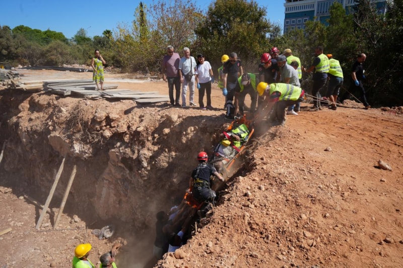 Akdeniz Üniversitesi kampüsündeki inşaatta çalışan işçi, dengesini kaybedip yaklaşık 4 metre düşerek koluna demir saplanınca itfaiye tarafından kurtarıldı.