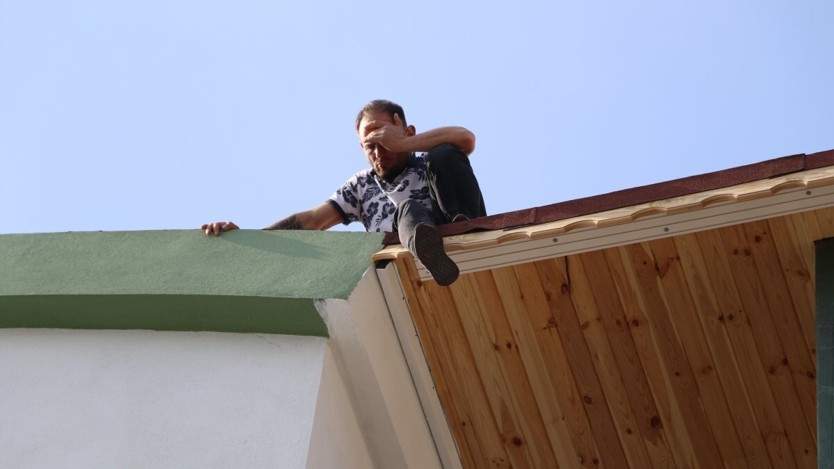 "Hayatımı darmaduman ettiniz, mahvettiniz her şeyimi yıktınız dağıttınız bir ev ve araba için mi yaptınız bunu dünya malı dünyada kalır hepimiz ölüp gideceğiz" ifadelerini kullanarak bağıran Cüneyt S. (30) için itfaiye ekiplerinin önlem amaçlı branda açtı.