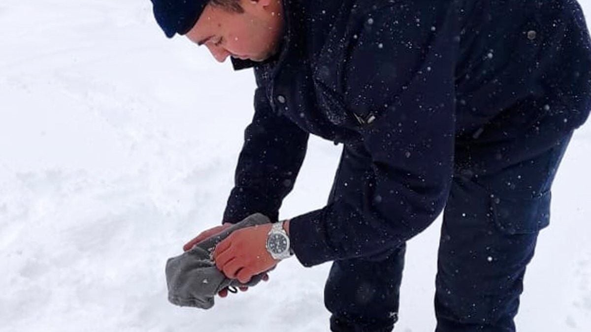 Bu sırada ekipler, Antalya-Konya yolunda donmak üzere olan kızılgerdan kuşu buldu. Jandarma personeli kuşu elleriyle ısıtmaya çalıştı, beresiyle sardı.