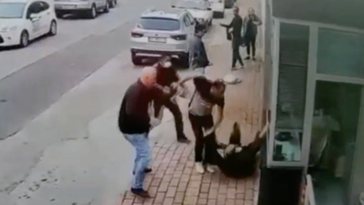 Kadının bağırması üzerine geri dönen şahıs, kadına yeniden vurmaya başladı.