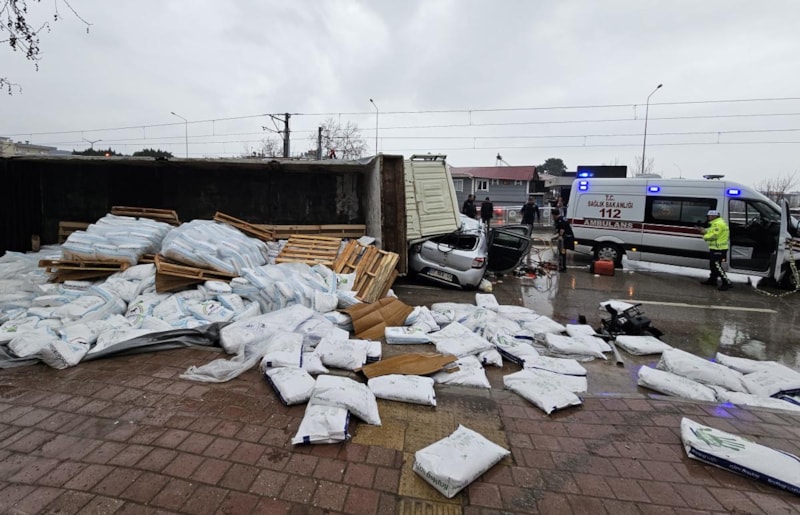 Kamyonda yüklü gübre torbaları, ilk kazanın yaşandığı alandan başlayıp cadde boyunca savruldu. Kazanın yaşandığı cadde, uzun süre trafiğe kapalı kaldı.