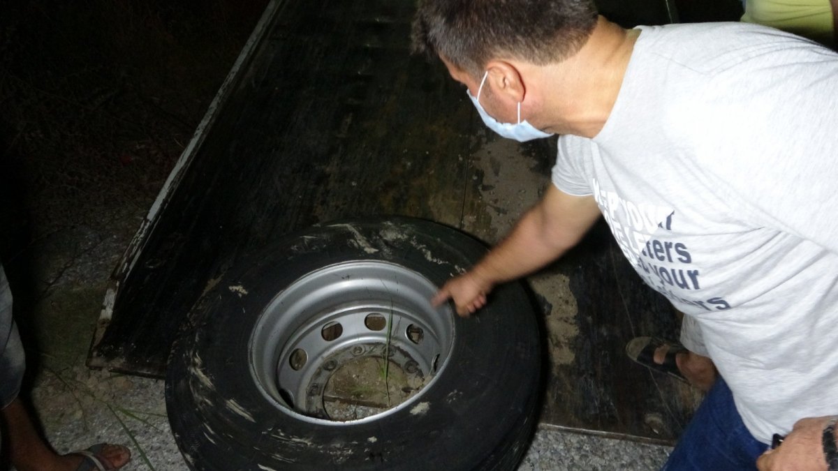 Alanya’dan Antalya istikametine gitmekte olan ilk etapta sürücüsü ve plakası tespit edilemeyen kamyonun, Doğançam Mahallesi kavşağı civarında lastiğinin yerinden fırladı.