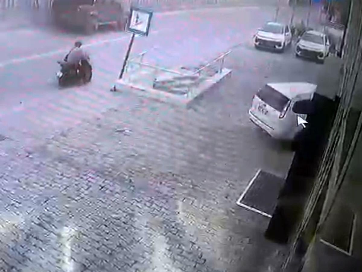 Bayi içindekilerin de panikle kaçmaya çalıştığı anlar görüntülerde yer aldı.