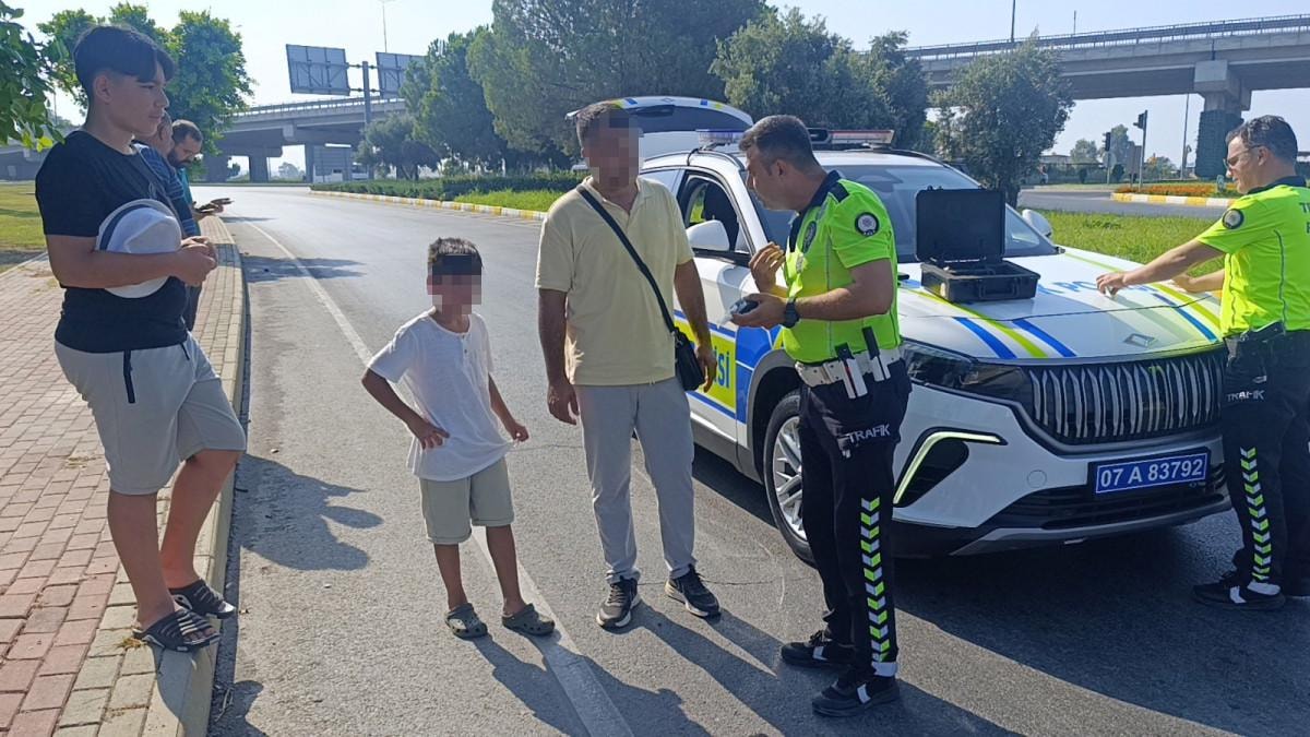 Üzüntüsünü hareketleriyle belli eden küçük çocuk zaman zaman gözyaşlarına hakim olamazken, onu teselli etmek babasına ve trafik polislerine düştü.