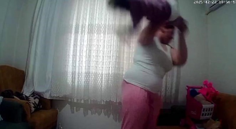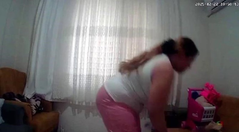 İzleyenleri dehşete düşüren görüntülerde, annenin bebeğine defalarca vurduğu, tokat attığı, terlikle darp ettiği ve ayaklarından tutarak koltuğa fırlattığı anlar yer aldı