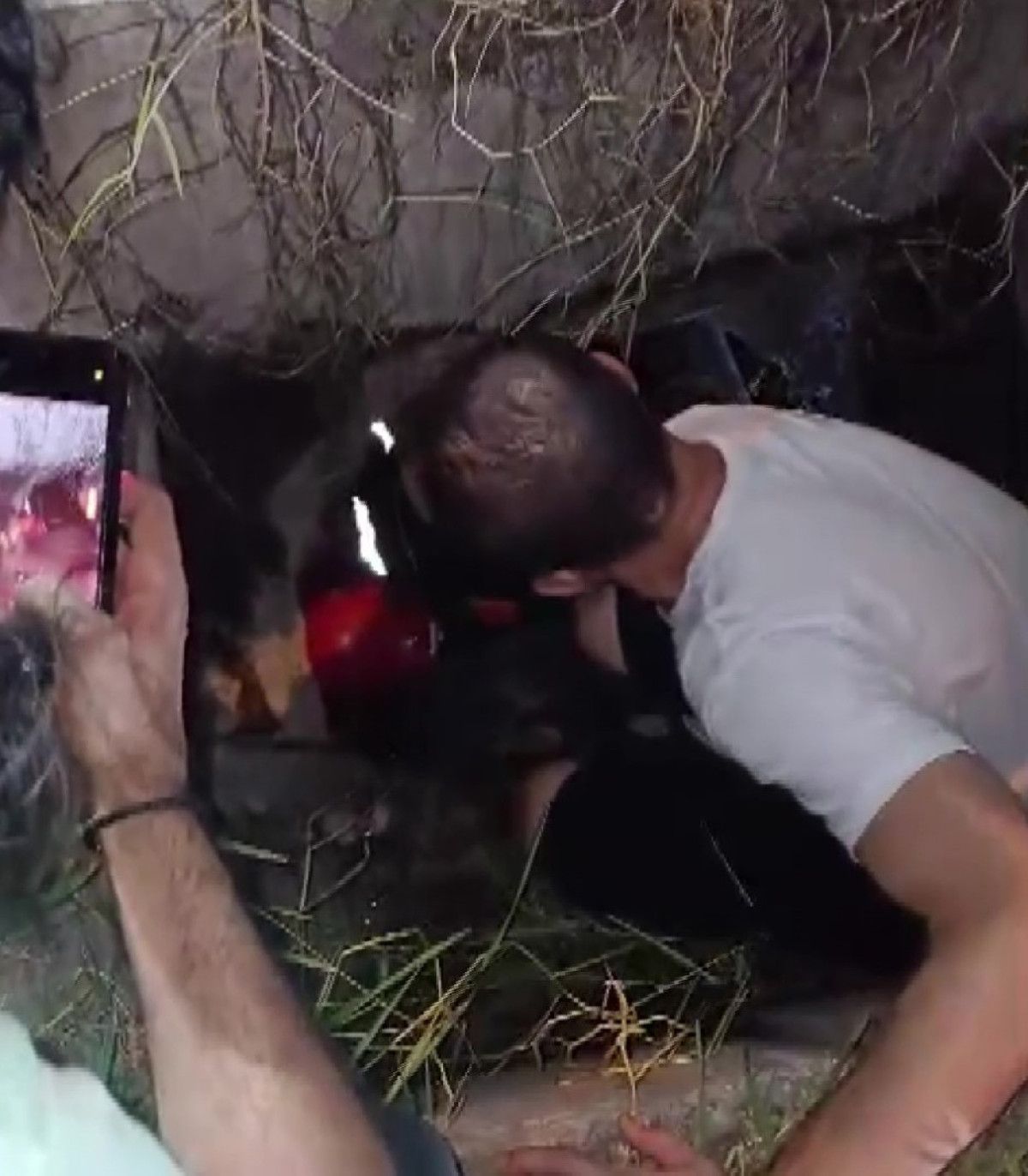 Vatandaşlar ve arama kurtarma ekibi tarafından yavru kedinin kurtarılma anları kayda alındı.