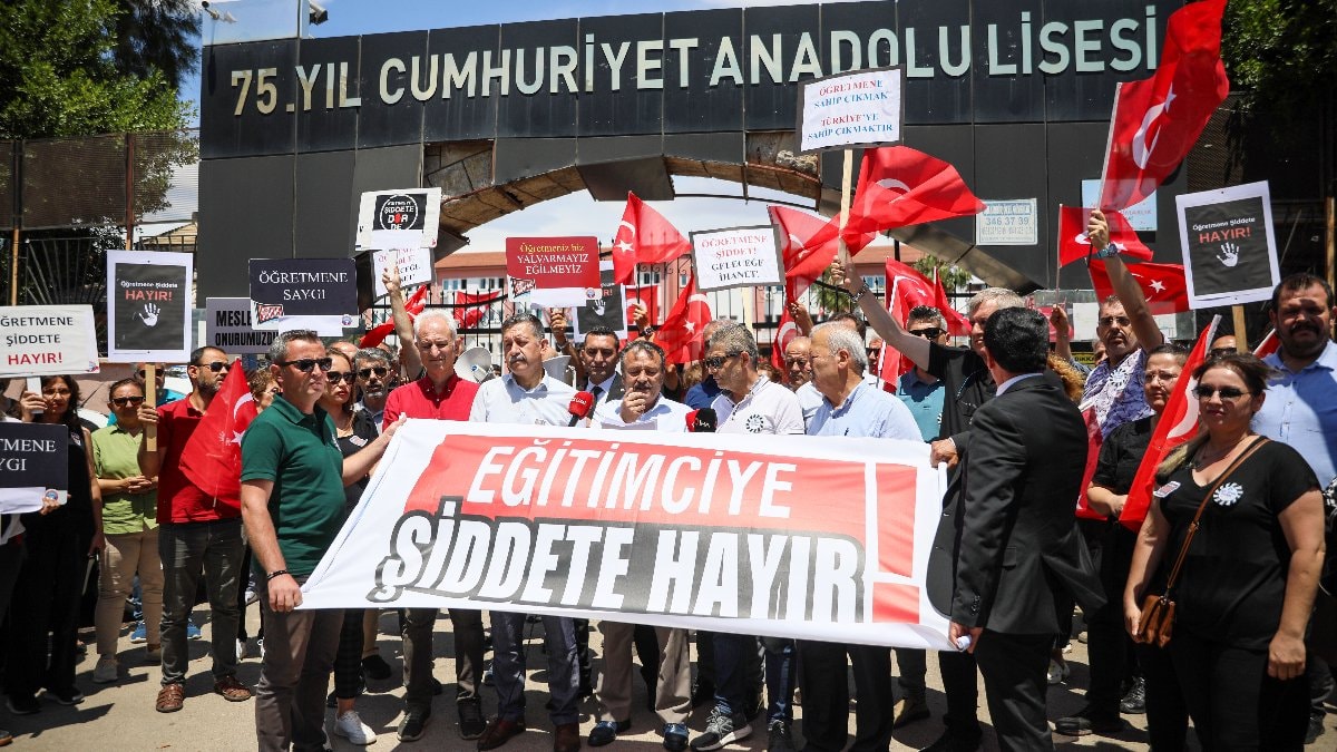 Türk Eğitim Sen Antalya 1 Nolu Şube Başkanı Oğuz Öztürk, şiddete maruz kalan eğitim çalışanlarını yalnız bırakmadıklarını söyledi. Öztürk, “Antalya valimiz, il ve ilçe milli eğitim müdürleri öğretmeninize sahip çıkın. Daha ne bekleniyor, şiddet yasası artık çıksın. Okullarımızda öğretmene şiddet, mobbing, taciz, itibarsızlaştırma vakaları ciddi önlemlerin, yasal düzenlemelerin ve esaslı politikaların hayata geçirilememesi nedeniyle maalesef had safhaya ulaşmıştır. Eğitimcilerimizi tahkir eden yayın, tutum ve açıklamalar, tüm bu şiddet olaylarına zemin hazırlamaktadır." dedi.