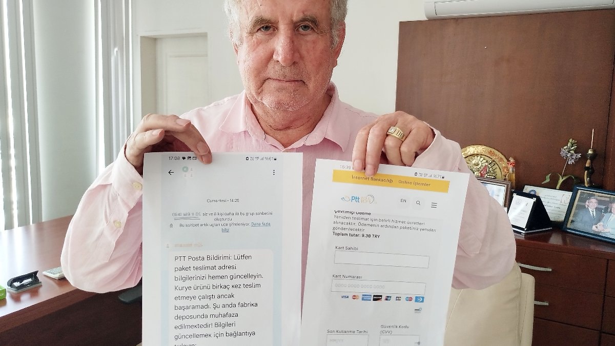 Antalya'da emlak şirketi sahibi Talip Yörükoğlu'nun cep telefonuna 17 Mayıs'ta, 'PTT'nin adı kullanılarak kısa mesaj geldi.