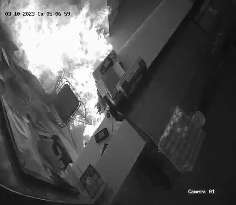 İş yerinin penceresinden içeri girdiği görülen ve kimliği henüz belirlenemeyen bir kişinin, içeriye benzin döküp, iş yerini ateşe verdiği anlar görüntülere yansıdı.