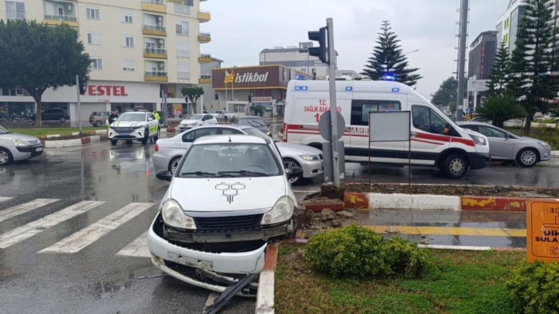 Manavgat ilçesinde kavşakta 2 otomobilin çarpışması sonucu meydana gelen trafik kazasında aynı araçta bulunan 3 kişi yaralandı. Kaza sırasında trafik ışıklarının çalışmadığı belirlenirken, araçlardan birisi kaldırıma çarparak durabildi.