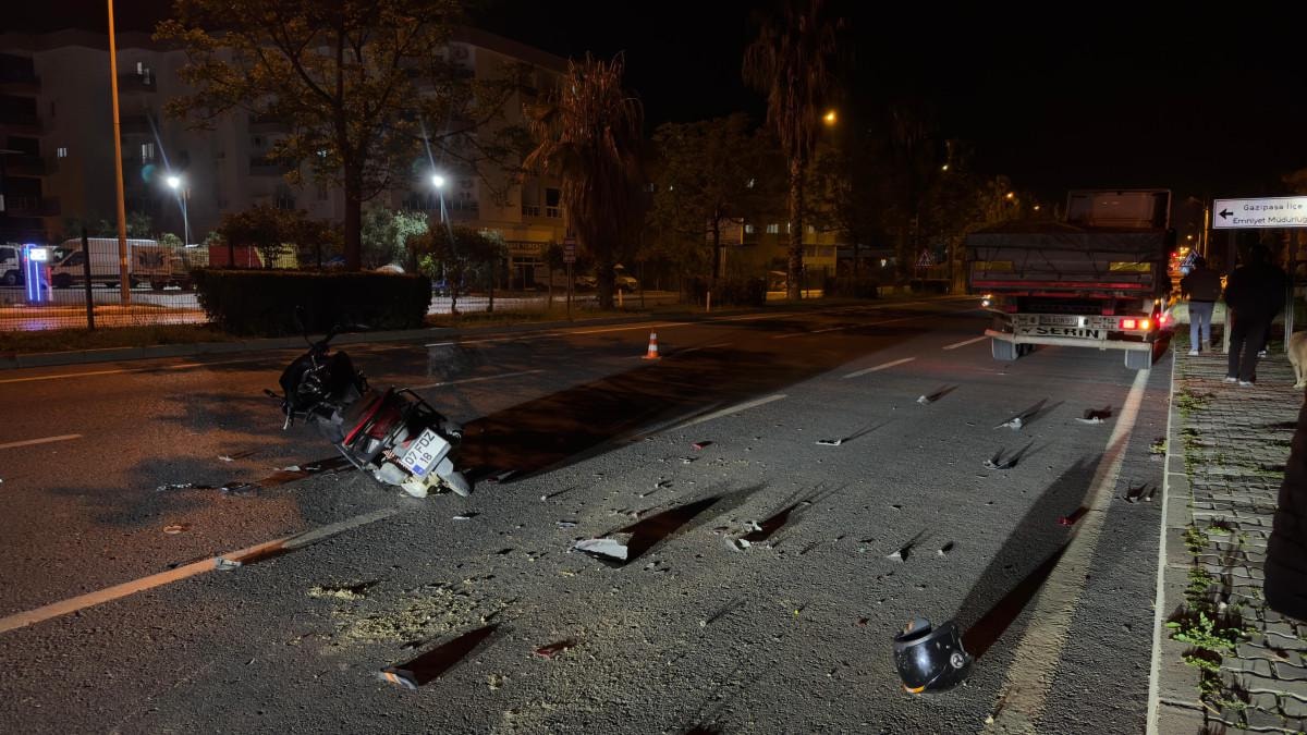 Antalya'nın Anamur ilçesinden Gazipaşa istikametine seyreden 14 yaşındaki motosiklet sürücüsü S.Ö., Ulusal Egemenlik Bulvarı yakınlarında direksiyon hakimiyetini kaybetti.