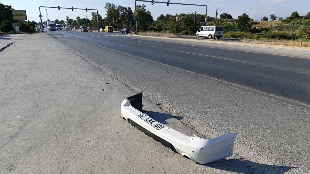 Kazada 'U' dönüşü yapan otomobilin tamponu kopup fırlarken her iki araç da durmadan yollarına devam etti.