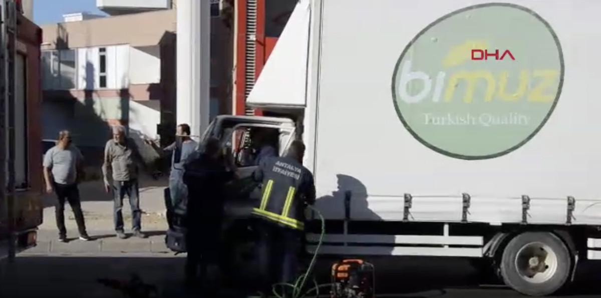 Arkadan çarpan kamyonun sürücüsü Işık, araçta sıkıştı.