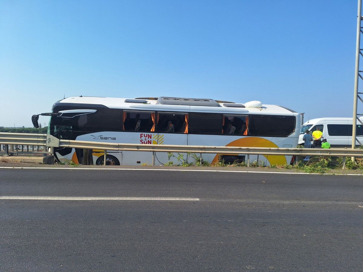 Antalya'nın Serik ilçesinde D-400 kara yolu üzerinde bulunan Belkıs Köprüsü girişinde Şeref D. idaresindeki tur otobüsü, sürücüsünün direksiyon hâkimiyetini kaybetmesi sonucu kontrolden çıktı.