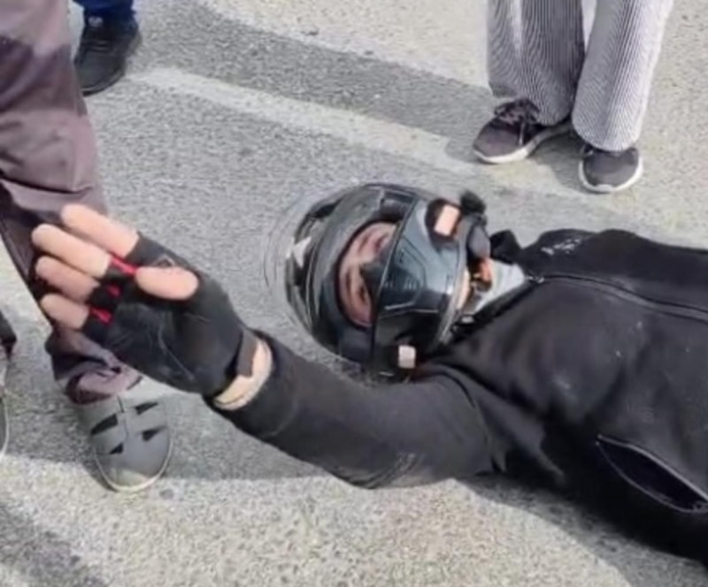 Kazada yaralanan motosiklet sürücüsünün yardımına çevredeki vatandaşlar koşarken, yerde acı içerisinde kıvranan motosiklet sürücüsü, çarpıştığı otomobilin sürücüsü ve küçük çocuğunun ağladığını fark edince kendi acını bir kenara bıraktı.