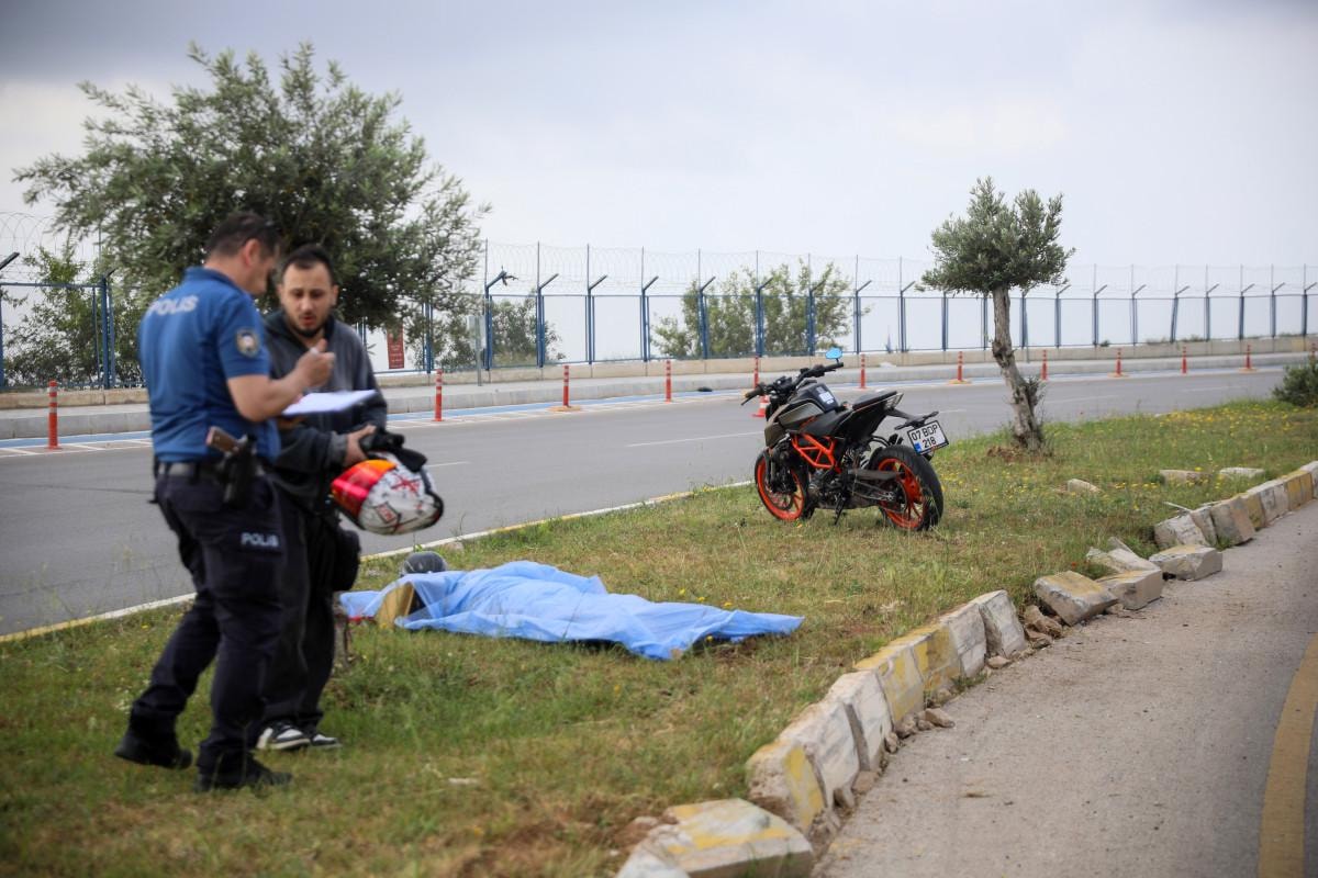 Antalya'nın Kepez ilçesinde Gökhan Tunca, çalıştığı diş kliniğine giderken virajda kontrolünü yitirdiği motosiklet refüje, ardından da buradaki zeytin ağacına çarptı.