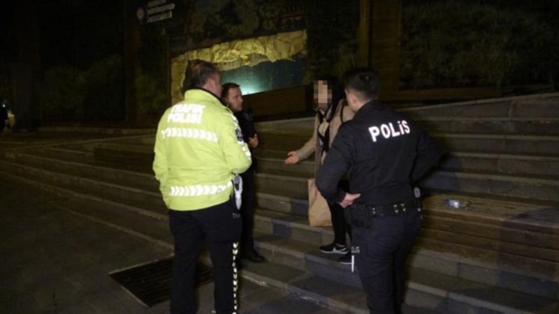 Polisler tarafından karakola götürülmek üzere ekip otosuna alınan kadın bir süre sonra ekip otosundan indirilirken, olay yerinden uzaklaştı.