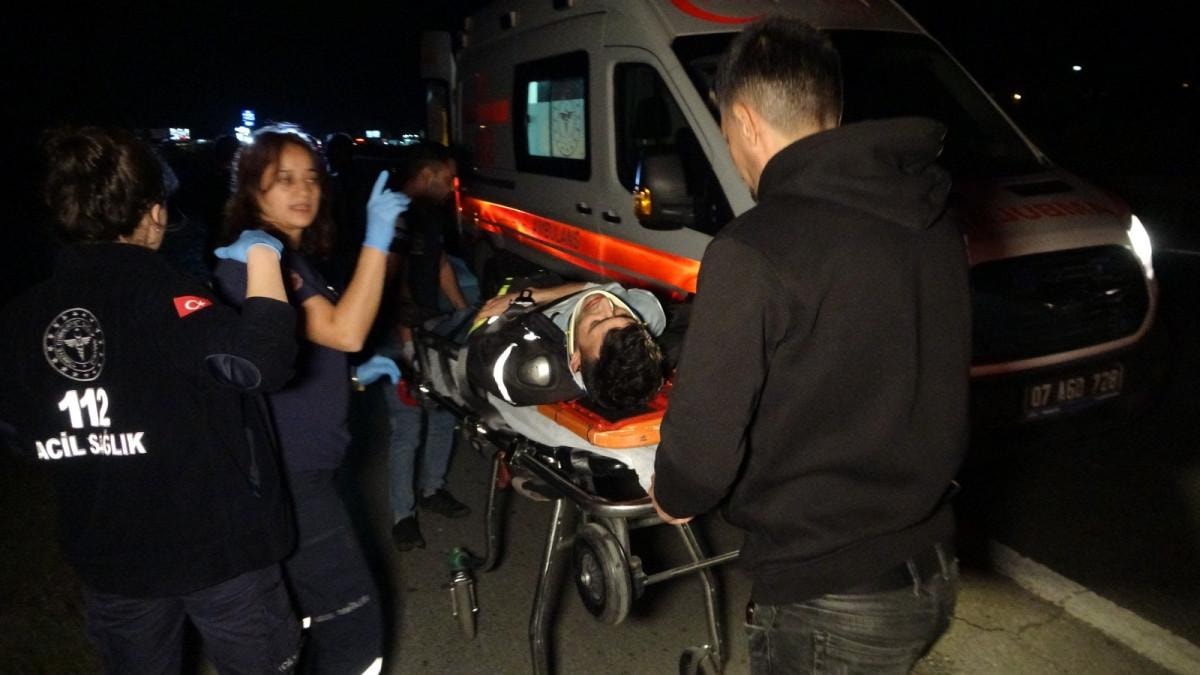 Kazada yola savrulan motosiklet sürücüsü Levent B., ambulansla hastaneye kaldırıldı.