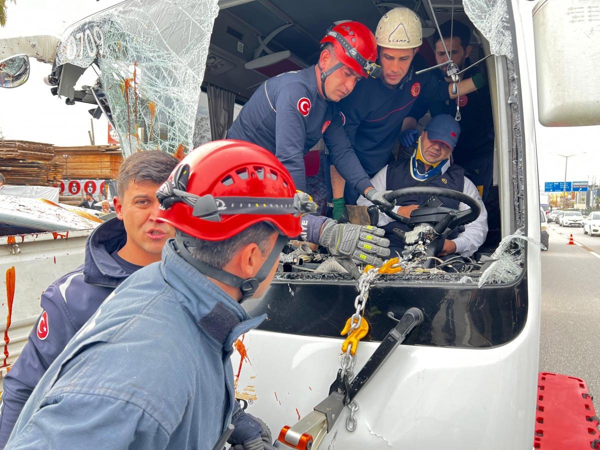 Araçlarda sıkışan midibüs sürücüsü Türkay Ağıl ile havalimanı personeli Bülent Akyüz ve kamyonet sürücüsü Atilla Karabulut da itfaiye ekiplerinin çalışmasıyla kurtarıldı.