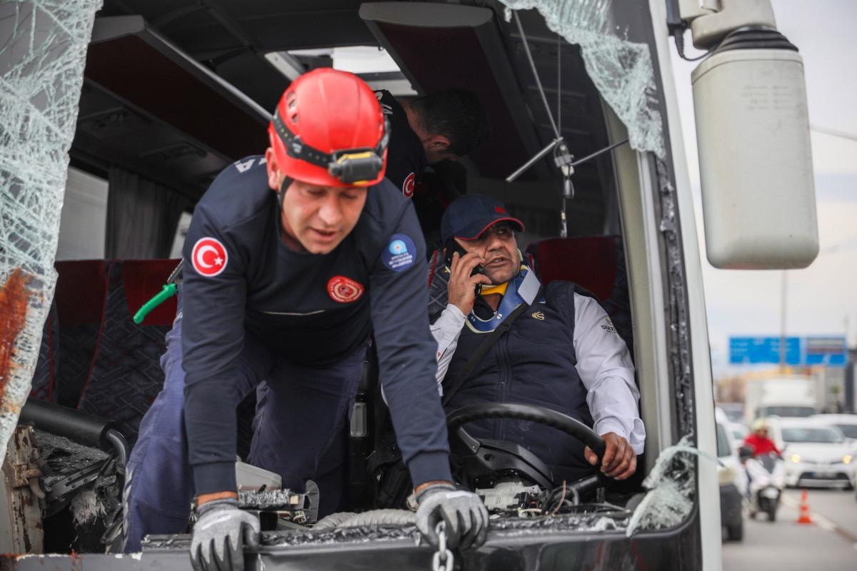 Kaza anında midibüste bulunan Soner Sırlı, "Ben aracın arkasında oturuyordum. Nasıl olduğunu görmedim. Benim durumum hafif ama durumu biraz daha sıkıntılı arkadaşlarım var. Havalimanına gidiyorduk. Midibüste 14 kişi vardık." dedi.