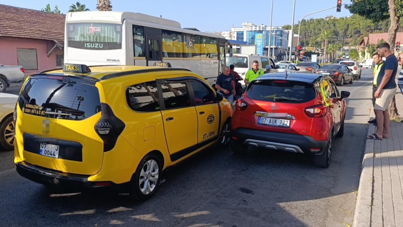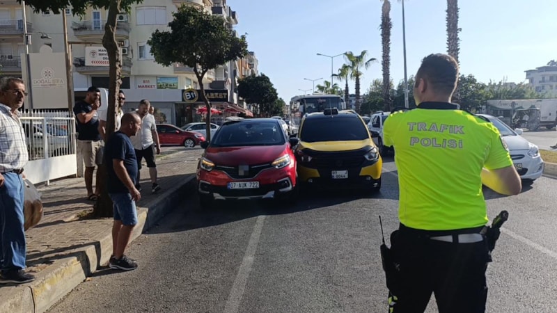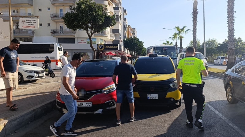 Manavgat ilçesinde araçlar arasından yolun karşısında kendisini bekleyen araca geçmekte olan kadın, taksinin çarpması sonucu yaralandı. Kaza anları güvenlik kamerasına yansıdı.