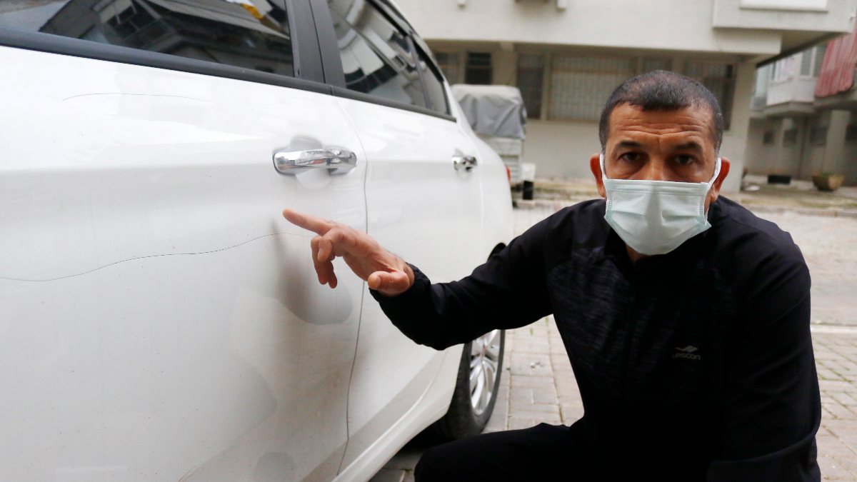 Osman Dedecan, park halindeki otomobilinin çizildiğini fark etti.