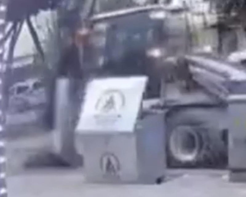 Görüntülerde, Okan Işık'ın kaldırımda yürüdükten sonra yolun karşısına geçmek için bir süre kepçenin geçmesini beklediği görüldü.